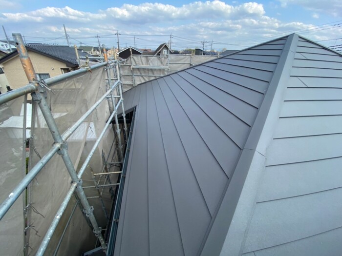こんにちは、青木板金です。 今回は屋根の板金工事を担当しました。 特に問題なく、スムーズに工事が完了しました。 屋根は高所作業となるので、屋根の状態確認や施工は、ぜひ弊社にお任せください。 雨樋修理などその他建築板金に対応いたします。
