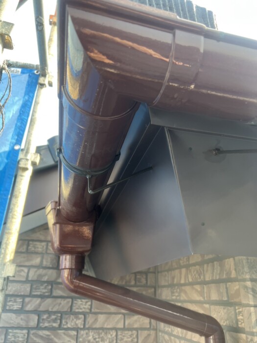 こんにちは、青木板金です。 今回は破風板板金取り付け・既存雨樋脱着工事を担当しました。 特に問題なく、スムーズに工事が完了しました。 外壁工事・屋根工事や雨樋修理などその他建築板金に対応いたします。
